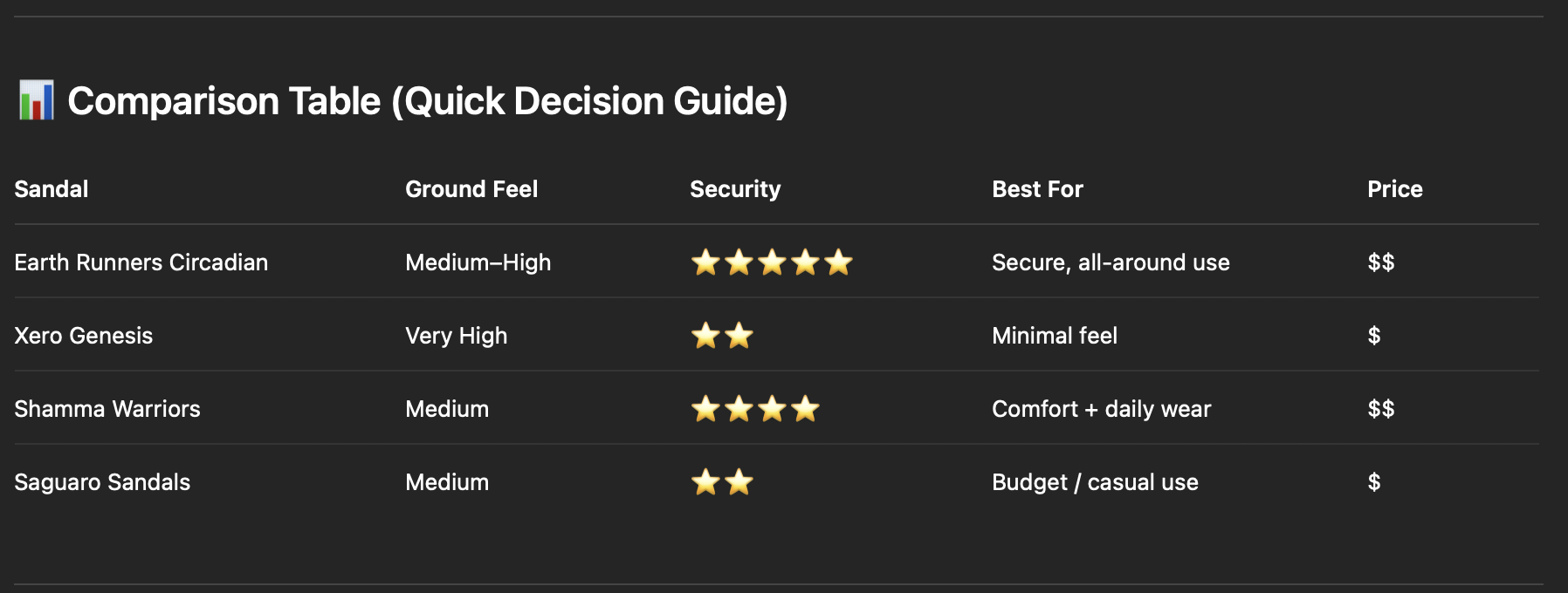 Budget option → Saguaro Sandals